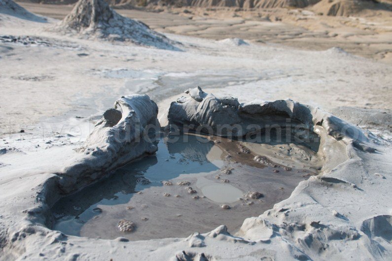The mud volcanoes from the Buzau Sub Carpathians are formed due to the underground eruptions of gases generated by oilfields hundreds of metres deep. The gas released by the black oil magma penetrates through crevices and fissures, adding up variable amounts of mud and water.