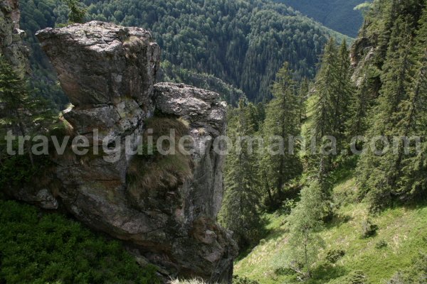 You find yourselves in an area called Cross Hill or Serpent Ridge. A sublime vista will enchant your sight. Before you there is: Bohodei Peak, one of the tallest peaks in the area – 1654 m (climbing area on granite rocks).