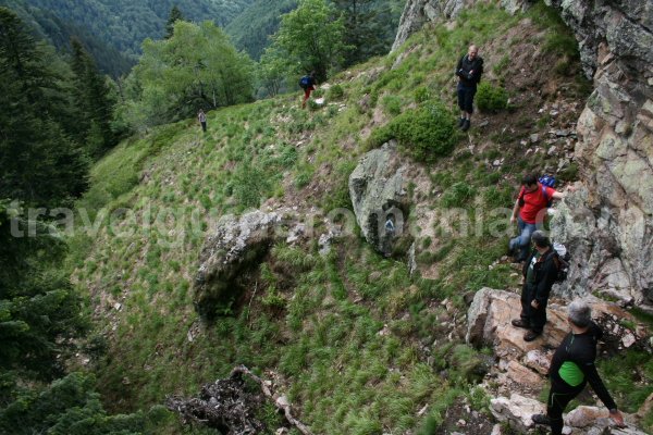 Climbing is not difficult, but it requires attention. The rocky areas alternate the ones with lush greenery. A vista expands towards Aleului Valley descending till the Crisul Pietros, near Boga – Pietroasa. On the left, towards our walking direction there is the Serpents Ridge that we visited in our first part of the trip.