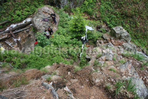 The surmountable area of the route is found at the send-off, near Bohodei Waterfall. We climb alongside some old firs until we reach the iron chains. From here we can observe the waterfall better. We gain altitude through a couple of waterfalls of about 3-5 m that are equipped with chains.