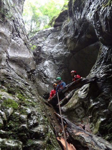 Pitches 11 and 12: these are rocky steps, the first one being 3m high and second one being 6m high. Both rappel stations are located on the left side of the canyon and are provided with two rings.