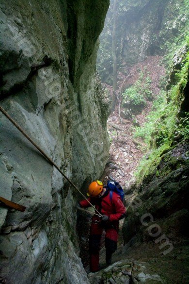 The canyon is bolted – you will find rappel rings at the rappel station and also a little bit above them, for setting up fixed lines to reach the rappel stations.