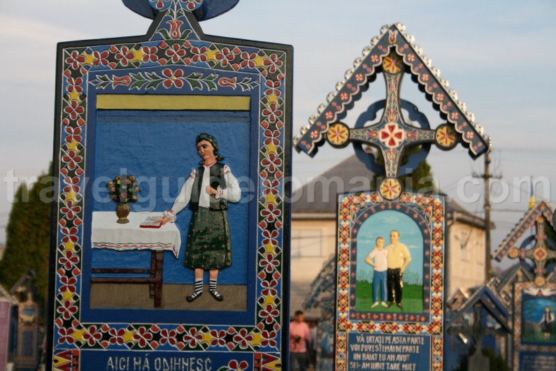 Through the epitaphs written on the tombstones, the craftsman praised or criticized the character and the life of the dead. Very often his texts had a touch of irony, especially when he wanted to highlight the flaws of the deceased. The combinations of vivid colors used on the wooden crosses, as well as the witty epitaphs written on them, explain why the place is known under the name of The Merry Cemetery and justify why it is a world-famous tourist attraction.