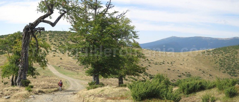 Back on the main road we continue the mountain biking trip on the red line marking. We pass through the clearing that soon gives place to the fir-tree forest. Before we enter the forest we pass by a crossroad.