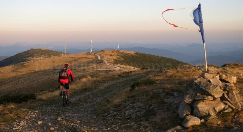 From the Cucurbata Mare peak towards the Cucurbata Mica (1769 m), on the 3 km road there are 5 wind turbines installed in the peak area.