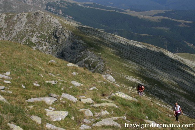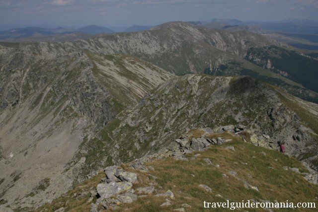 At the intersection of the main ridge of Parangului mountains (Sura Gruiului area) you will encounter the ‘red stripe’ marker (route used for covering the main ridge of the Parang Mountains). Twenty more minutes along the knoll, with Rosiile Cauldron on the right side, and you will reach Parangul Mare Peak.