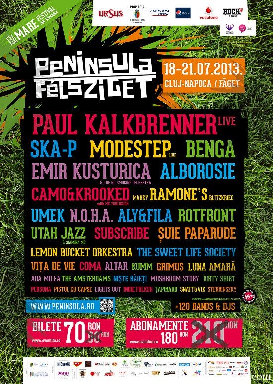 Kaiser Chiefs (UK), Paul Kalkbrenner (DE), Alborosie (JAM/IT), Utah Jazz & Stamina MC (UK), Şuie Paparude, Viţa de Vie, Anima Sound System (HU), Lemon Bucket Orkestra (CAN), Luna Amară, Acapella WindSingers (HU), Magda Puskas & friends, Mushroom Story, Theory Of Mind, Sky Swallows Challenger, Satelittes, Natif, Mojo Barrel, Blood Print, Rubik’s Cube