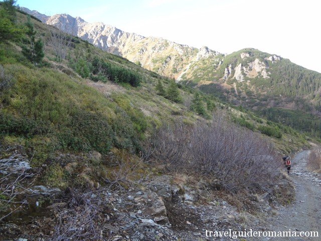 To your right there is an abrupt ridge named Piciorul Mosului. It can be covered only with mountaineering equipment having a difficulty level of 2B/2A. To your right there is also another abrupt ridge – Piciorul Piatra Alba. It can be cover in the same conditions as Piciorul Mosului.