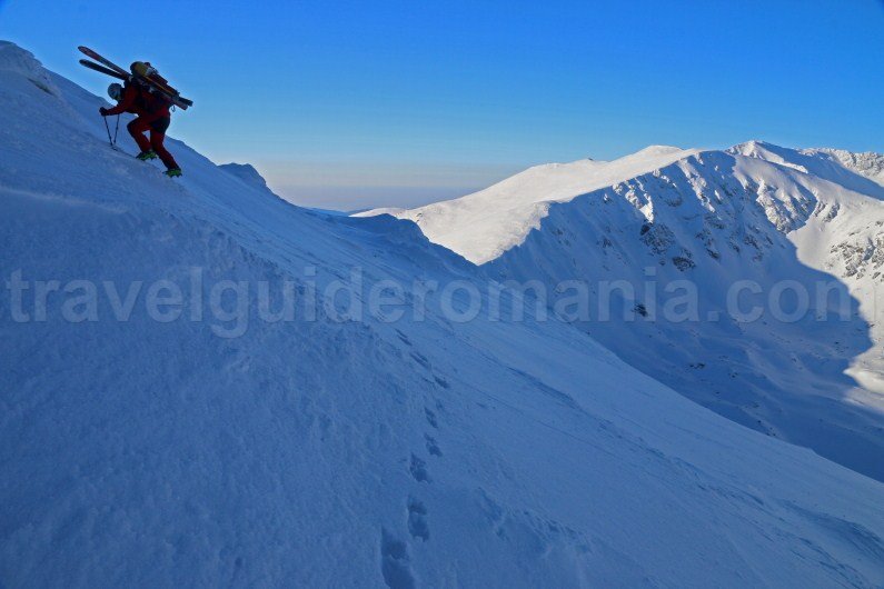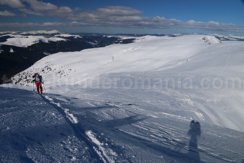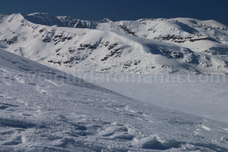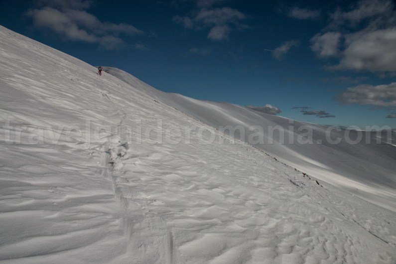 The area of Iezer Peak (2157 m) and Mohorul Peak (2336 m) has steeper slopes that can be covered only with ice picks and snowshoe crampons. When we have done the route, the snow was hard enough so that we could use our skis.