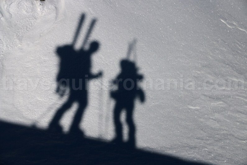 In this situation, you will have to continue almost only on snowshoe crampons and with an ice pick, having your skis on the rucksack until Parangul Mare Peak. You will also have to take into consideration the degree of exhaustion of your team members.