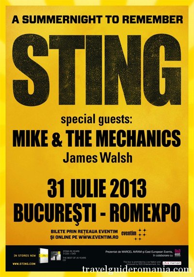 Brief Info: Sting returns in Romania and he will perform some of his greatest songs. Mike and the Mechanics along with James Walsh will be performing the opening act.